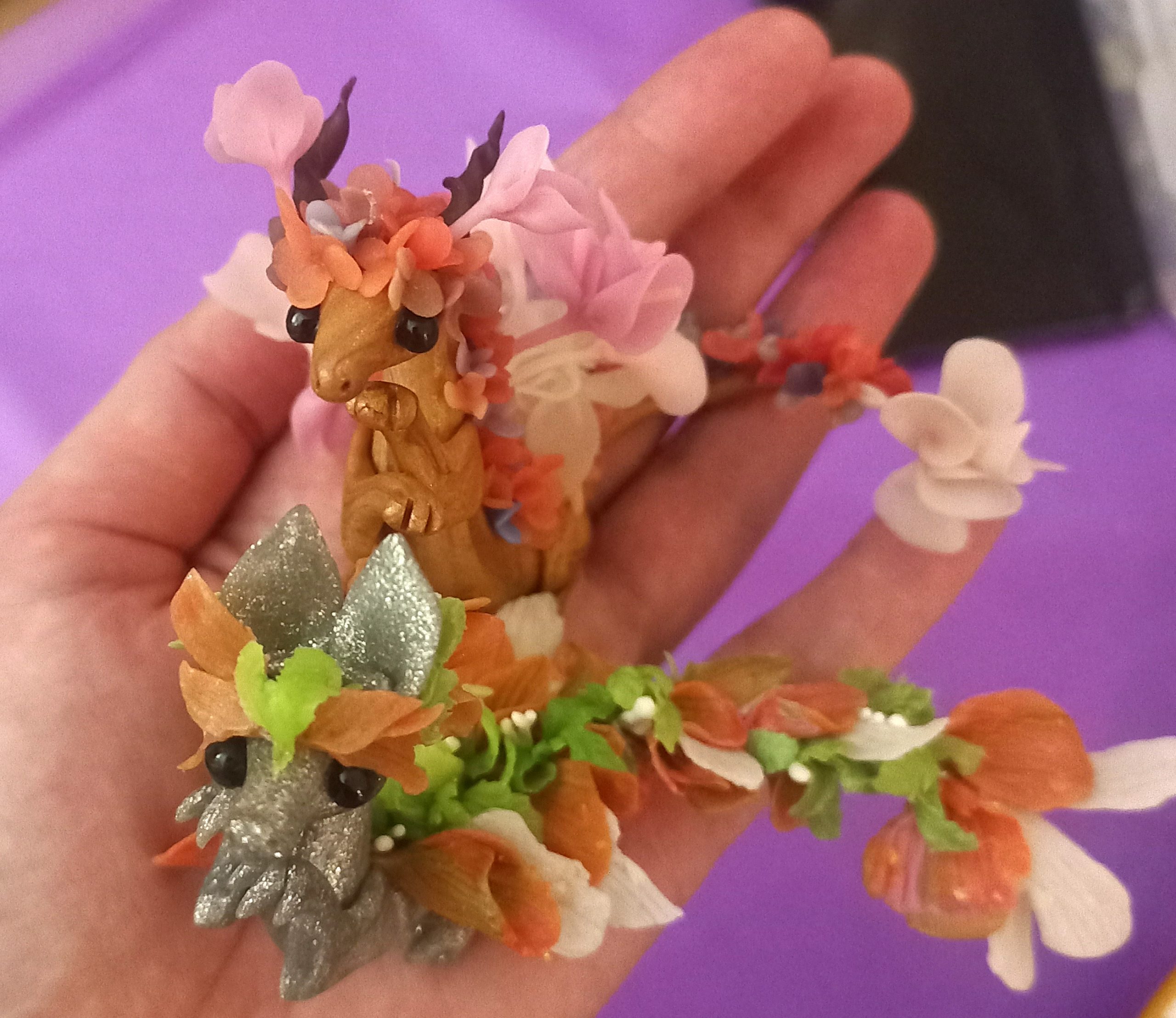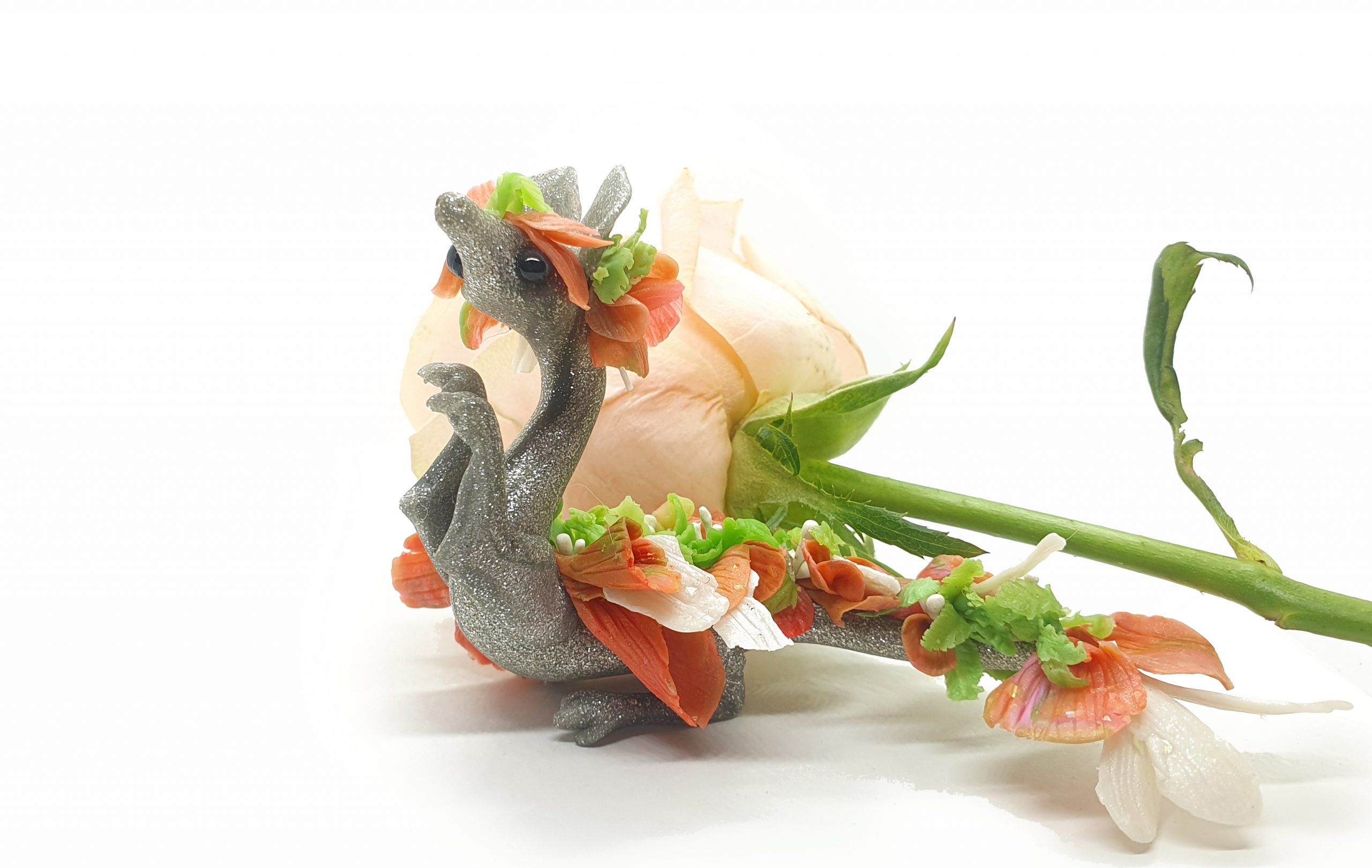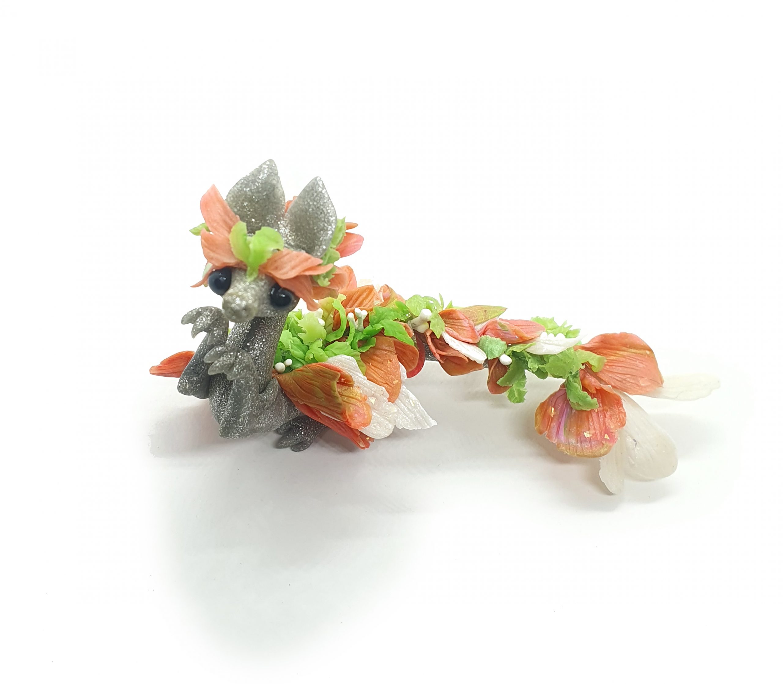Petals the Miniature Polymer Floral Clay Dragon Sculpture