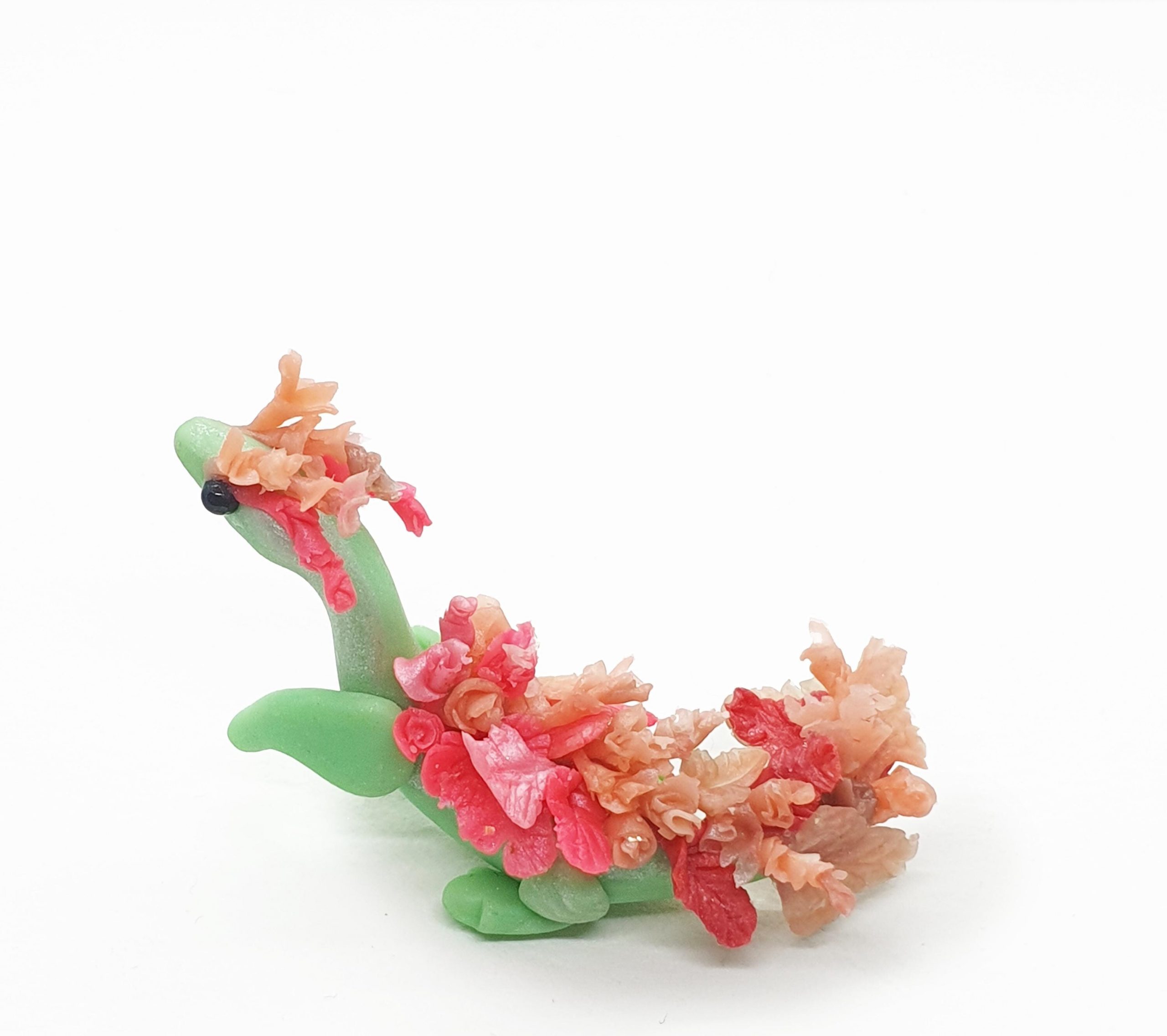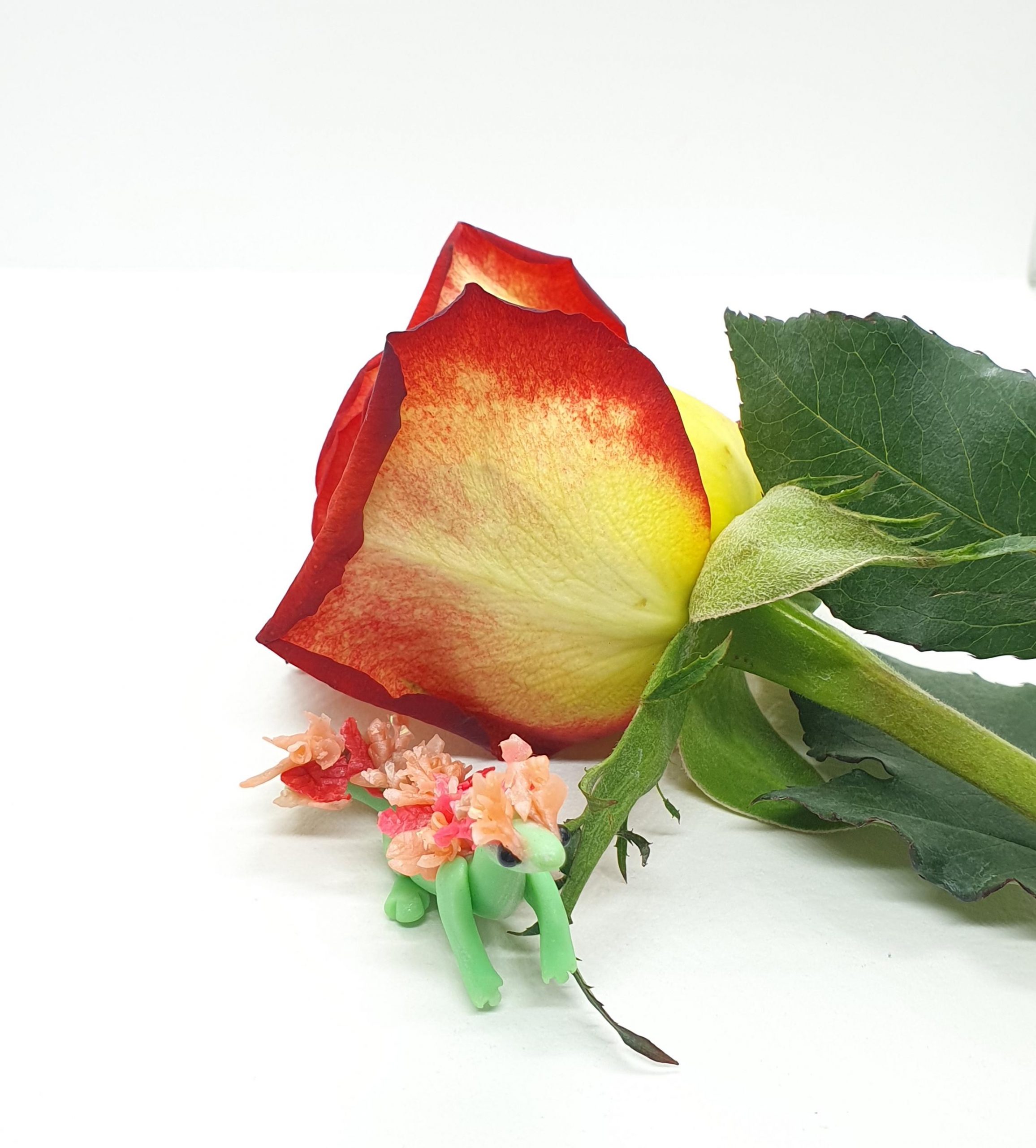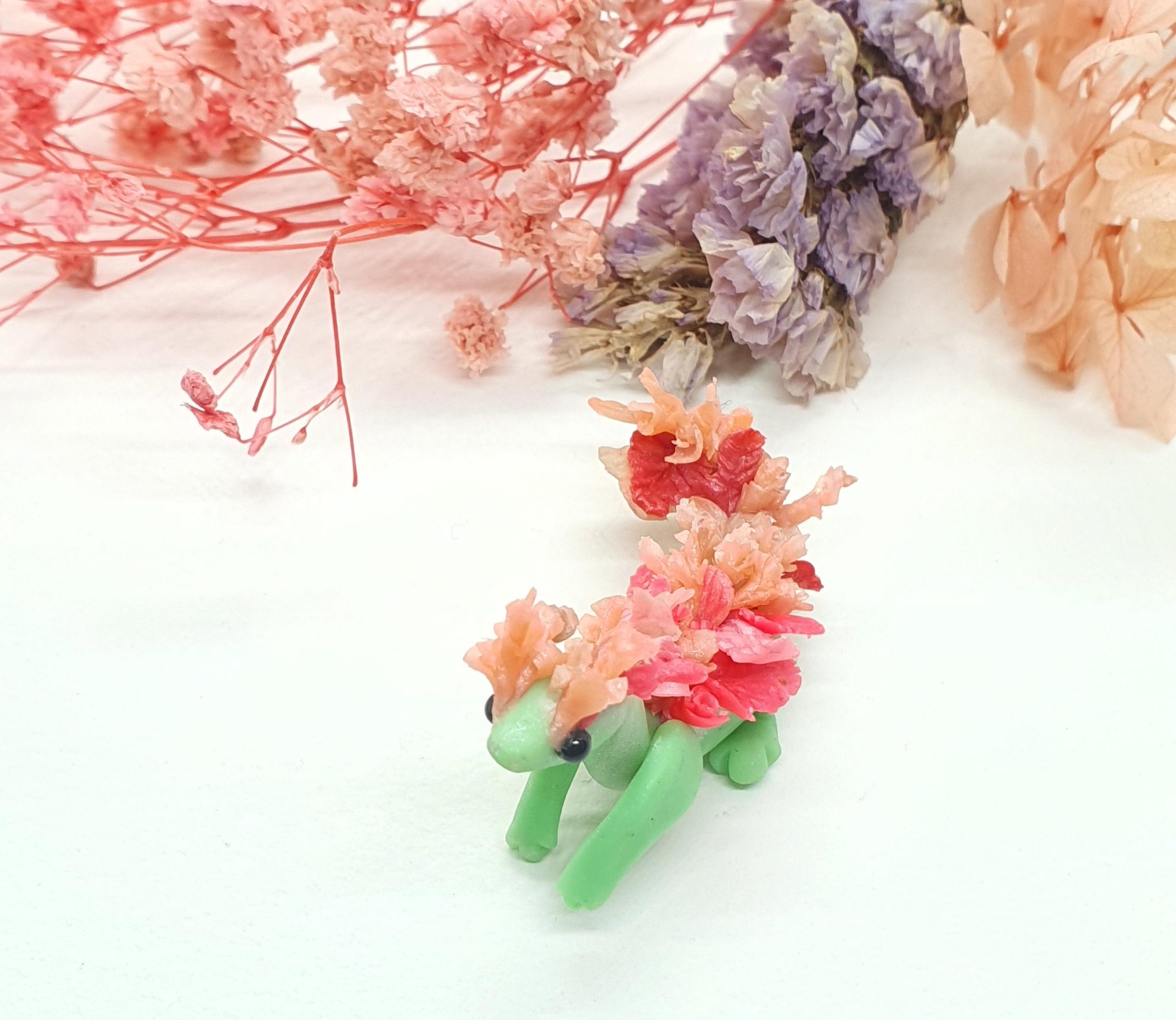 This miniature little flower dragon is made entirely handmade from clay by me and is looking for its forever home.