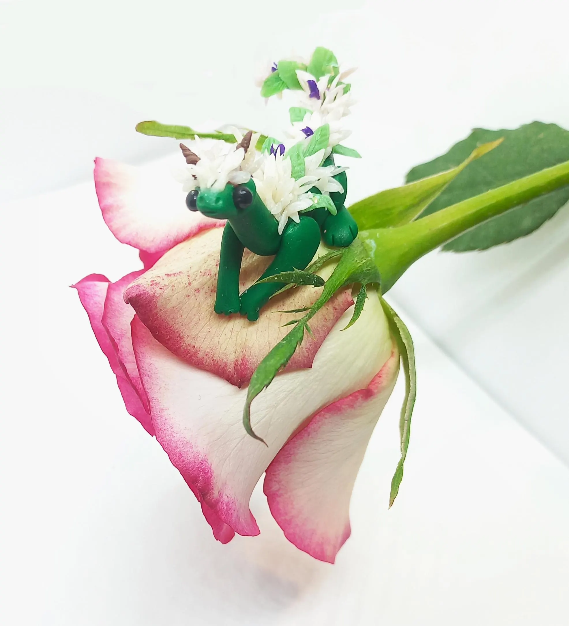 This micro little flower dragon is made entirely handmade from clay by me and is looking for its forever home.